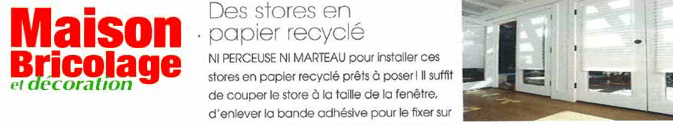 "Redi Shade, le premier store papier prêt à poser" Personnalisez-le store cliquez ici La VBI* de BIBA